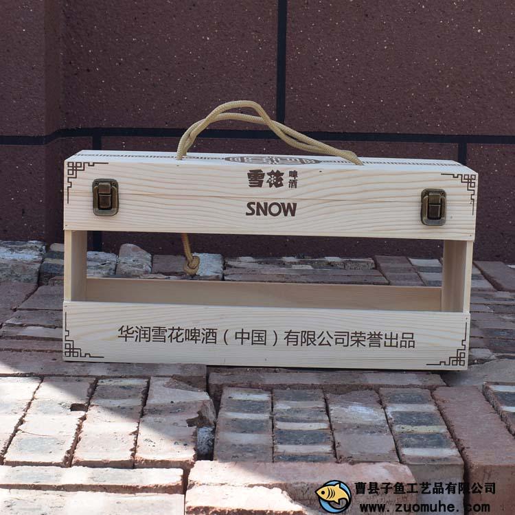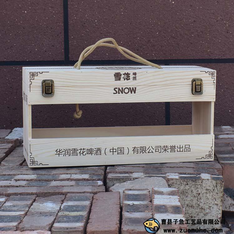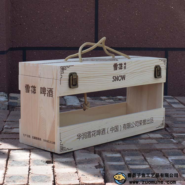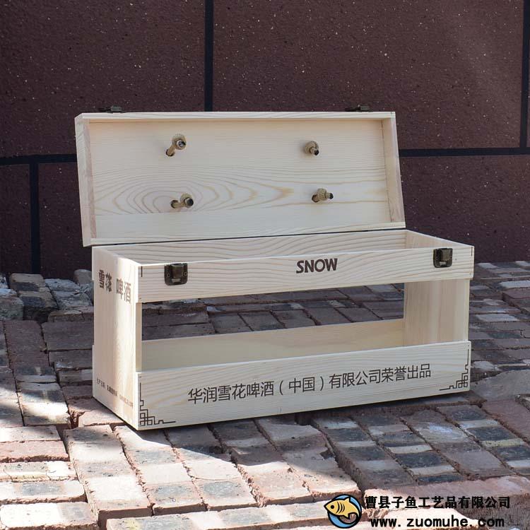 這是一款采用松木制作的啤酒木盒,一箱可以裝12聽易拉罐雪花啤酒,高檔大氣,精簡(jiǎn)的禮品盒。